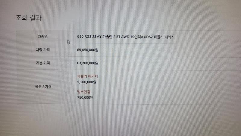 | µî±Þ | G80 (RG3)(20³â~ÇöÀç) °¡¼Ö¸° 4WD 2.5 Åͺ¸ AWD (¼¼ºÎµî±Þ ¾øÀ½) |
